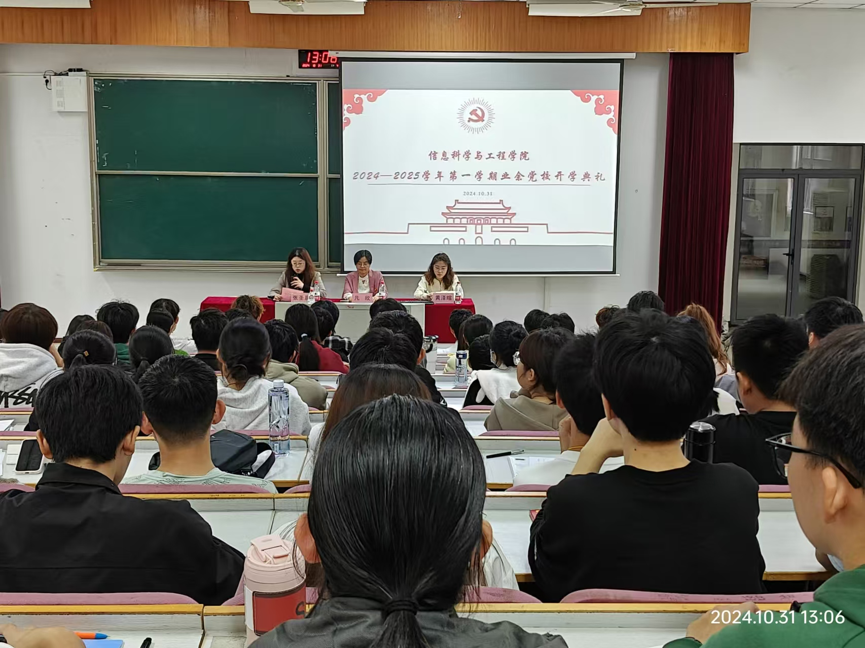 2024年10月31日信息科学与工程学院(beat365官方网站)2024-2025学年第一学期业余党校开班典礼在博闻楼报告厅举行。学院党委副书记凡欣、党校班主任和全体党校学员参加,班主任张圣晨主持典礼。