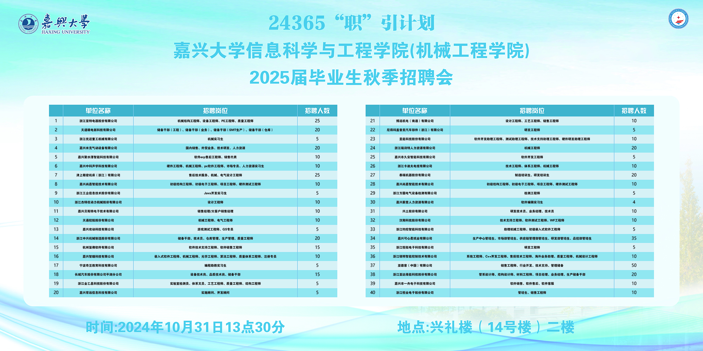 为进一步加强用人单位与求职毕业生的双向沟通和选择,促进高质量就业,10月31日下午,信息科学与工程学院(beat365官方网站)2025届毕业生秋季专场招聘会在梁林校区兴礼楼顺利举行。