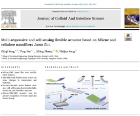 近日,beat365beat365官方网站(机器人工程学院)张礼兵、吴婷教师团队在多响应柔性致动器研究方面取得连续进展,自2025年1月以来,团队先后在《Sensors and Actuators: B Chemical》(中科院一区TOP,影响因子:8.0)和《Journal Of Colloid And Interface Science》(中科院一区TOP,影响因子:9.4)期刊发表论文2篇。beat365官方网站与浙江理工大学联合培养2022级硕士研究生宋智齐为第一作者,beat365官方网站吴婷和张礼兵老师为共同通讯作者。