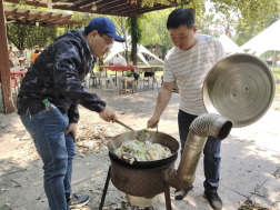土灶野炊,共品烟火之趣。中午,教职工们转场至户外营地,分组协作制作传统野米饭。从搭土灶、拾柴火到淘米洗菜、生火烹饪,大家分工明确,配合默契。袅袅炊烟中,腊肉、豌豆、春笋等食材在铁锅中翻滚,香气四溢。经过近一小时的忙碌,一锅锅金黄喷香的野米饭新鲜出炉。教职工们围坐一堂,品尝亲手烹饪的美食,畅谈工作与生活,现场氛围温馨融洽。